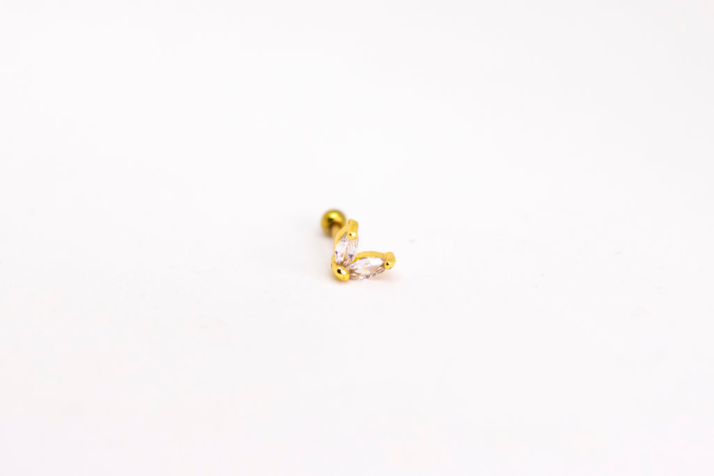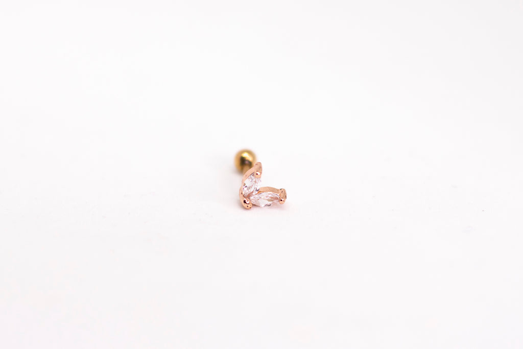 Piercing Oreille en Acier chirurgical Papillon en Strass en Silver, RoseGold et Gold: Ref: 10001111