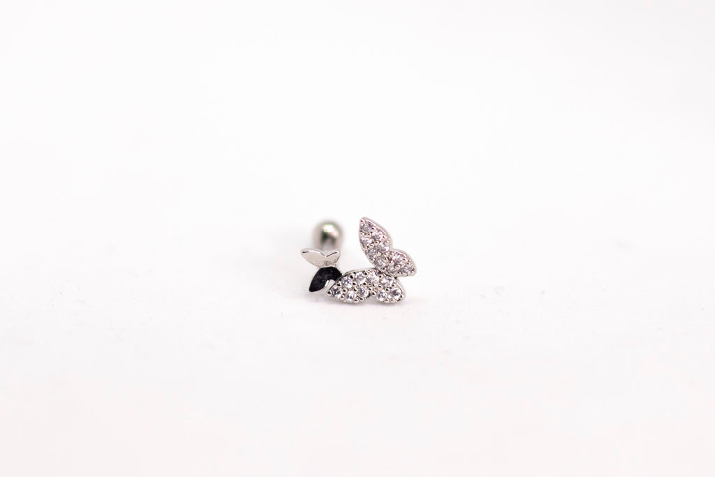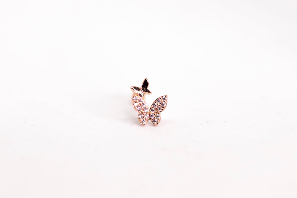 Piercing Oreille en Acier chirurgical Papillon en Strass en Silver, RoseGold et Gold: Ref: 10001115