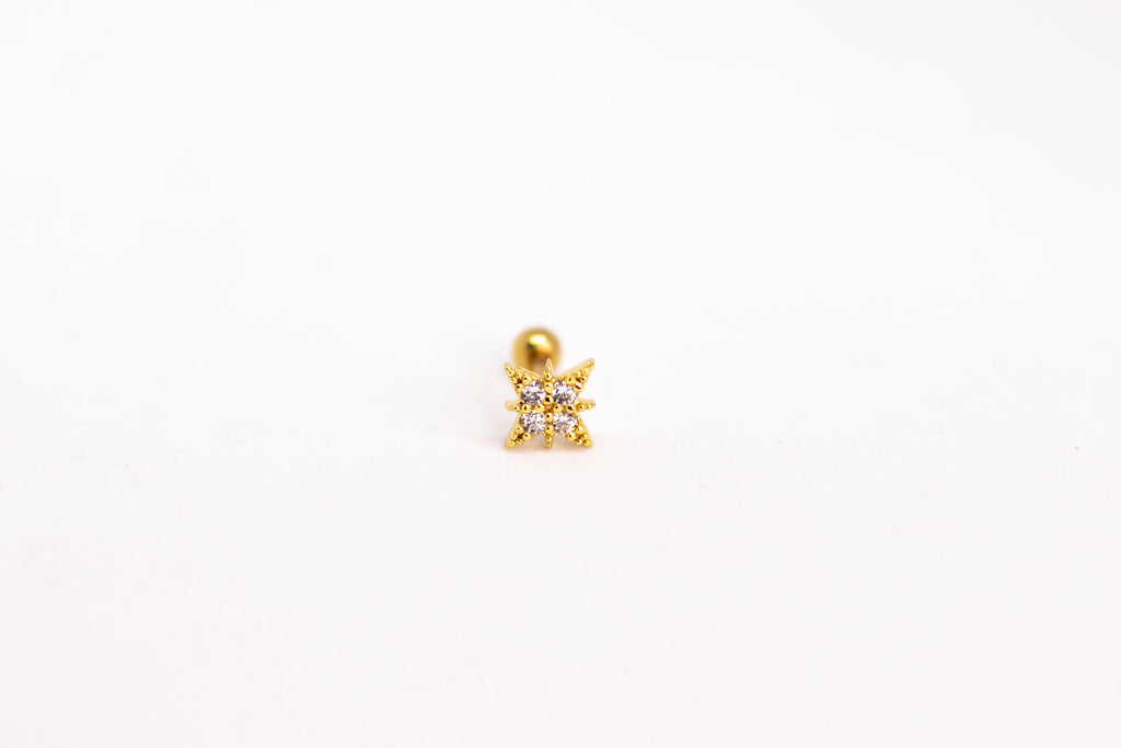 Piercing Oreille en Acier chirurgical en Strass en Silver, RoseGold et Gold: Ref: 10000603