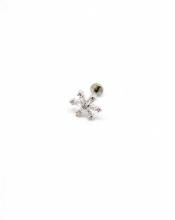 Piercing Oreille en Acier chirurgical avec strass Couleur Silver flocon de neige PO-075