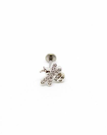 Piercing Oreille en Acier chirurgical avec strass Couleur Silver forme d'abeille PO-076