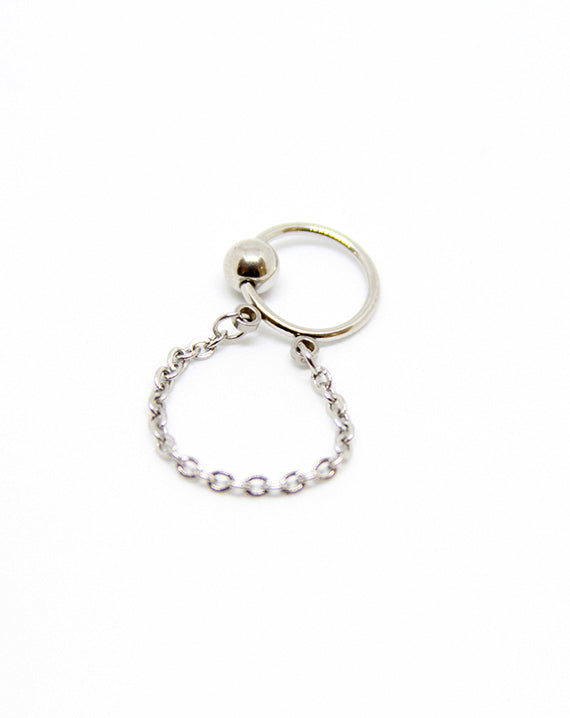 Piercing Oreille en Acier chirurgical Couleur Silver Ring avec chaine PO-078