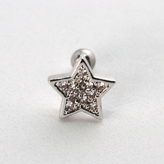 Piercing Oreille en Acier chirurgical strass bordure étoile Couleur Silver PO-200