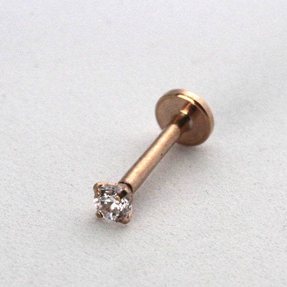 Piercing Oreille en Acier chirurgical strass en solitaire Couleur Rosé PO-288